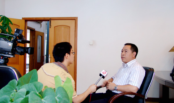 廣州電視臺記者正在采訪公司董事長王聲位